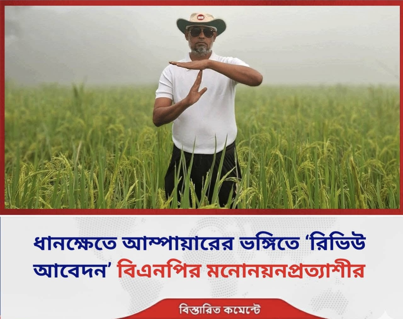 হাইকমান্ডের দৃষ্টি আকর্ষণ করে ধানক্ষেতে গিয়ে আম্পায়ারের ভঙ্গিতে ‘রিভিউ’ এর জন্য আবেদন