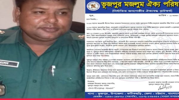 ফটিকছড়ির ভূজপুরে ২০১৩ সালের রাজনৈতিক মামলার নামে নিরীহ মানুষকে গ্রেপ্তার ও হয়রানির ঘটনায় এসআইয়ের অপসারণ চেয়ে থানা ঘেরাওয়ের ঘোষণা দিয়েছে ভূজপুর মজলুম ঐক্য পরিষদ নামের একটি সংগঠন। সংগঠনের পক্ষ থেকে